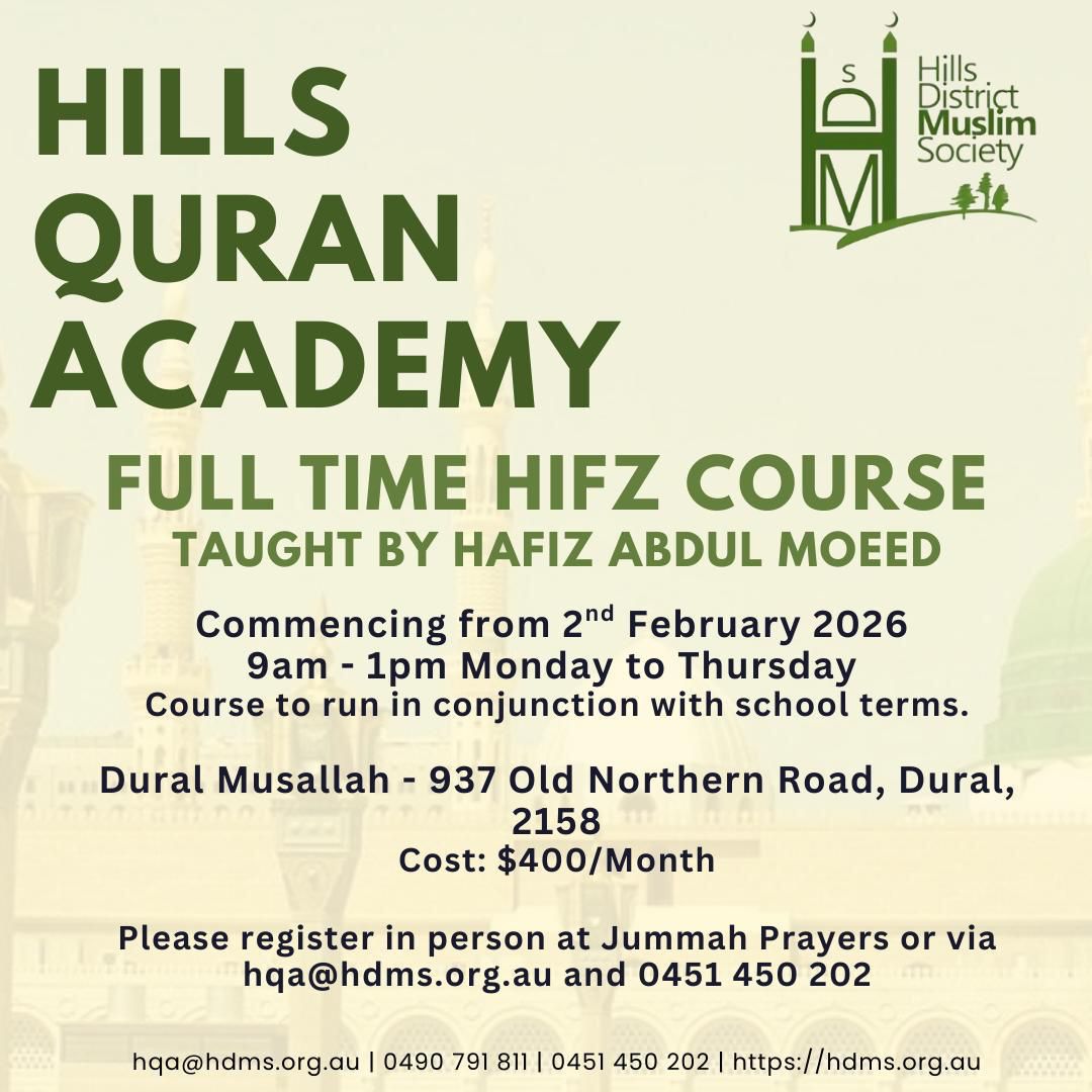 HDMS is excited to announce that the Hills Quran Academy will be starting Quran Drop In Sessions every Saturday.